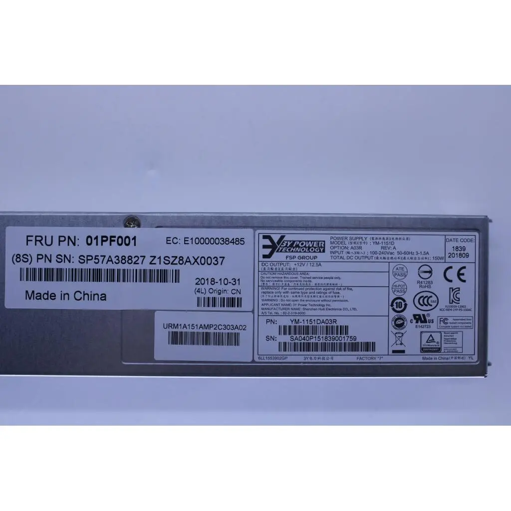 150W, AC POWER SUPPLY, FRONT TO REAR