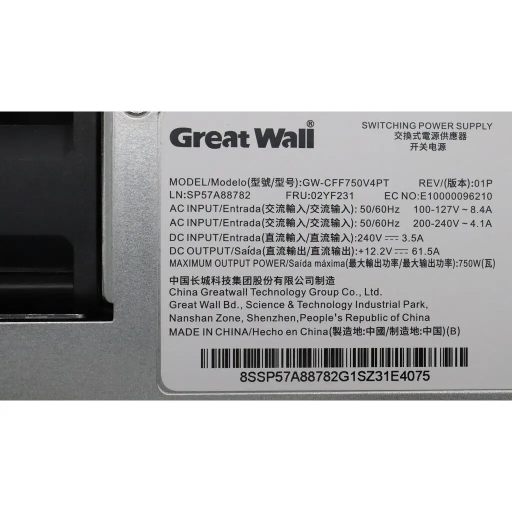 Power Supply GreatWall 750W 230Vac/115Vac AC Hot Swap