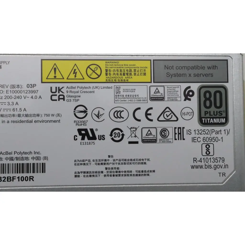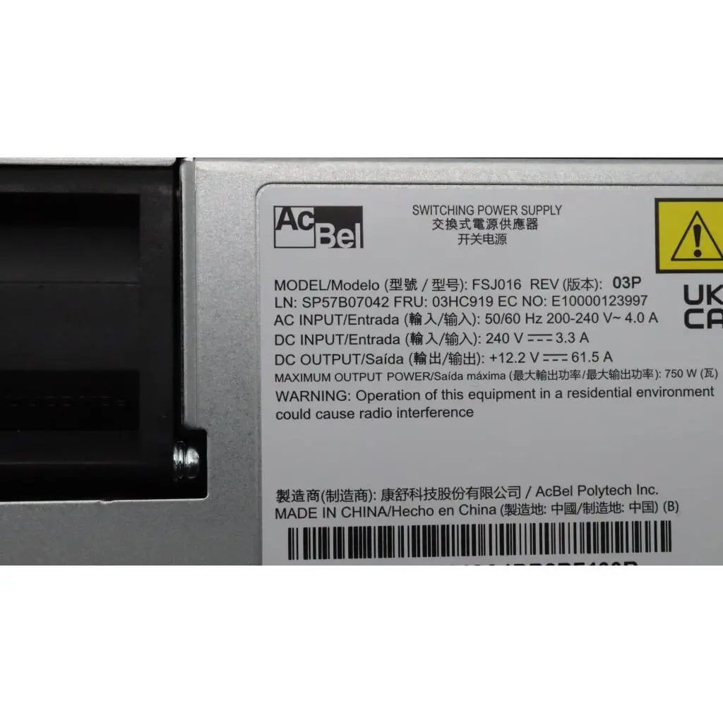 Power Supply Acbel 750W 230Vac AC Hot Swap