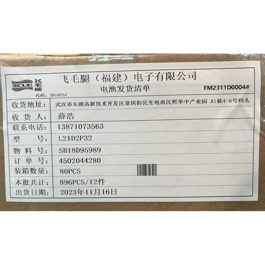 SCUD-A-R L21D2P32 3.87V24.7Wh 2cell